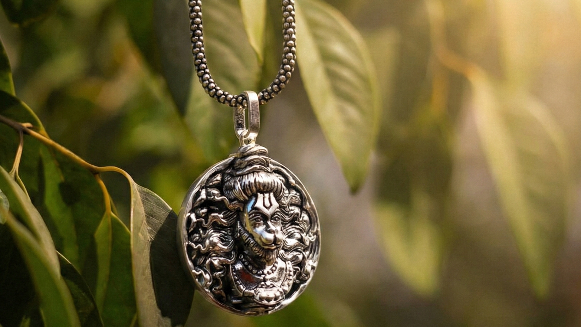 SKYshop Hanuman Ji Pendant Oxodaised Silver Chain